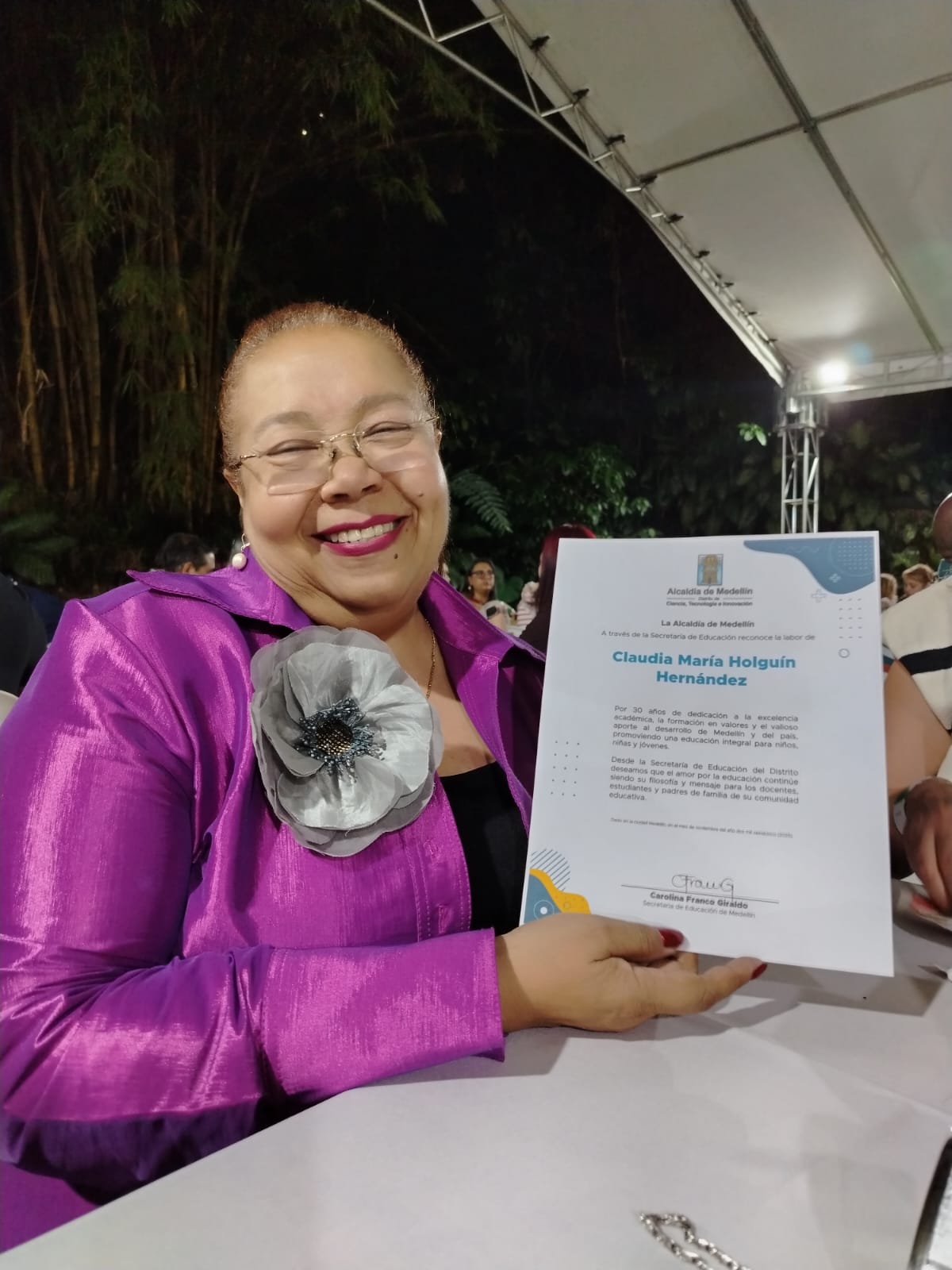 «Queremos expresar nuestro más sincero agradecimiento a Claudia María Holguín Hernández por su dedicación y compromiso con la educación. Su liderazgo ha sido un ejemplo para toda la comunidad educativa y su legado seguirá inspirando a generaciones futuras», expresó un miembro de la comunidad educativa.